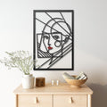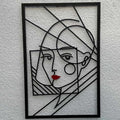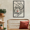 Introducing our stunning geometrically designed minimalist woman's face, crafted to perfection and transformed into a captivating metal wall art. Embracing the exquisite essence of line art, this black masterpiece features strikingly bold red lips that add a pop of color and allure.